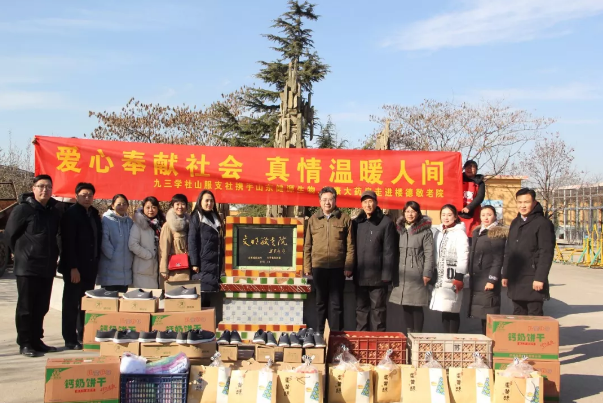 敬老愛老一直是中華民族的傳統美德。元旦佳節之際,伴隨著冬日的暖陽,九三學社攜手健源生物、葆康大藥房等愛心企業人士一行13人,山東健源生物總經理助理、辦公室主任王玲女士、技術部總監李燕女士、外宣部邢燭經理代表公司參與到此次愛心活動中,帶著精心為老人們準備的雞蛋、餅干、鞋子等慰問品,沿著崎嶇不平的山路,驅車輾轉2個小時的車程,給樓德鎮敬老院的老人們送去關心和溫暖。再次來到這里,大家感到格外的親切,這幾年學社一直關注著敬老院老人們的生活近況,希望能夠為老人們做點事,讓老人們能夠更好的度過晚年時光。老人們看到我們來了顯的格外高興,一個個笑容滿面,精神抖擻。