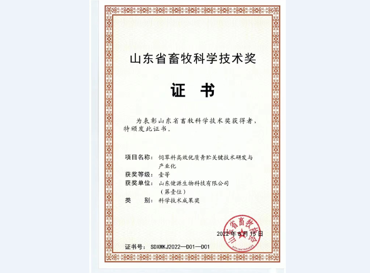 公司產品青貯寶、健力源、益康泰、源立凈等連續兩年被評為山東畜牧業博覽會優質產品金獎并獲得了國家...