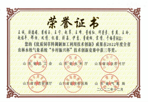 公司產(chǎn)品青貯寶、健力源、益康泰、源立凈等連續(xù)兩年被評為山東畜牧業(yè)博覽會優(yōu)質(zhì)產(chǎn)品金獎并獲得了國家...