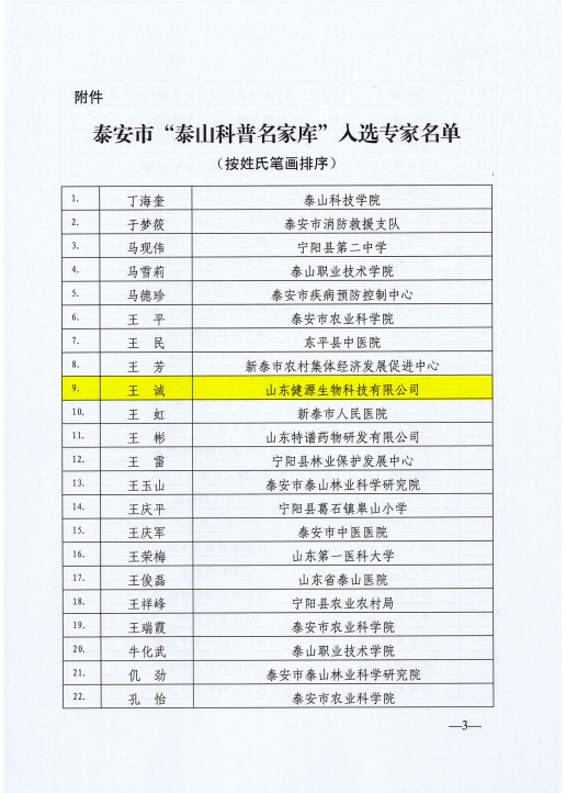 發布時間:[2024-6-6 16:33:30] 瀏覽量:3325次近日,泰安市科學技術協會公布了泰安市“泰山科普名家庫”入選專家名單,根據泰安市“泰山科普名家庫”入庫標準,山東健源生物科技有限公司董事長王誠被認定為泰安市“泰山科普名家”。