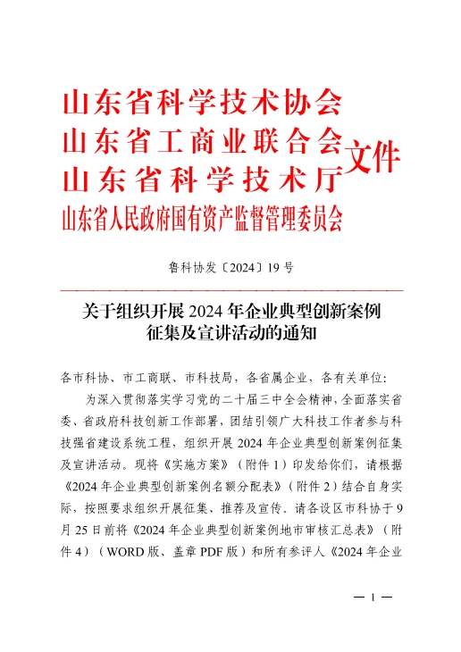 2024年企業(yè)典型性創(chuàng)新案例征集及宣講活動,是根據(jù)中國科協(xié)要求,按照《關(guān)于組織開展2024年企業(yè)典型創(chuàng)新案例征集及宣講活動的通知》(魯科協(xié)發(fā)〔2024〕19號)有關(guān)規(guī)定,依托園區(qū)(企業(yè))科協(xié)組織,對在科學(xué)研究、技術(shù)應(yīng)用、科技推廣、技術(shù)創(chuàng)新、成果轉(zhuǎn)化等工作中取得優(yōu)異成績、具有示范意義的典型案例進行推薦,通過講述創(chuàng)新故事,弘揚企業(yè)家精神、科學(xué)家精神、工匠精神,激發(fā)創(chuàng)新活力。