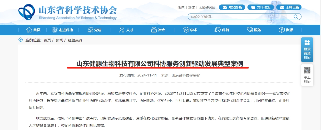 喜報|健源生物項目入選2024年山東省企業(yè)典型創(chuàng)新案例