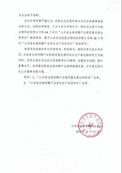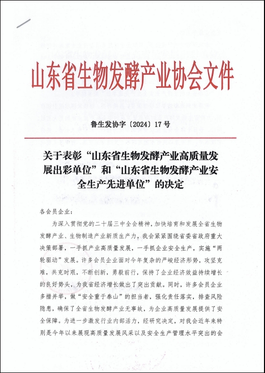 健源生物榮獲“山東省生物發(fā)酵產(chǎn)業(yè)高質(zhì)量發(fā)展出彩單位”稱號