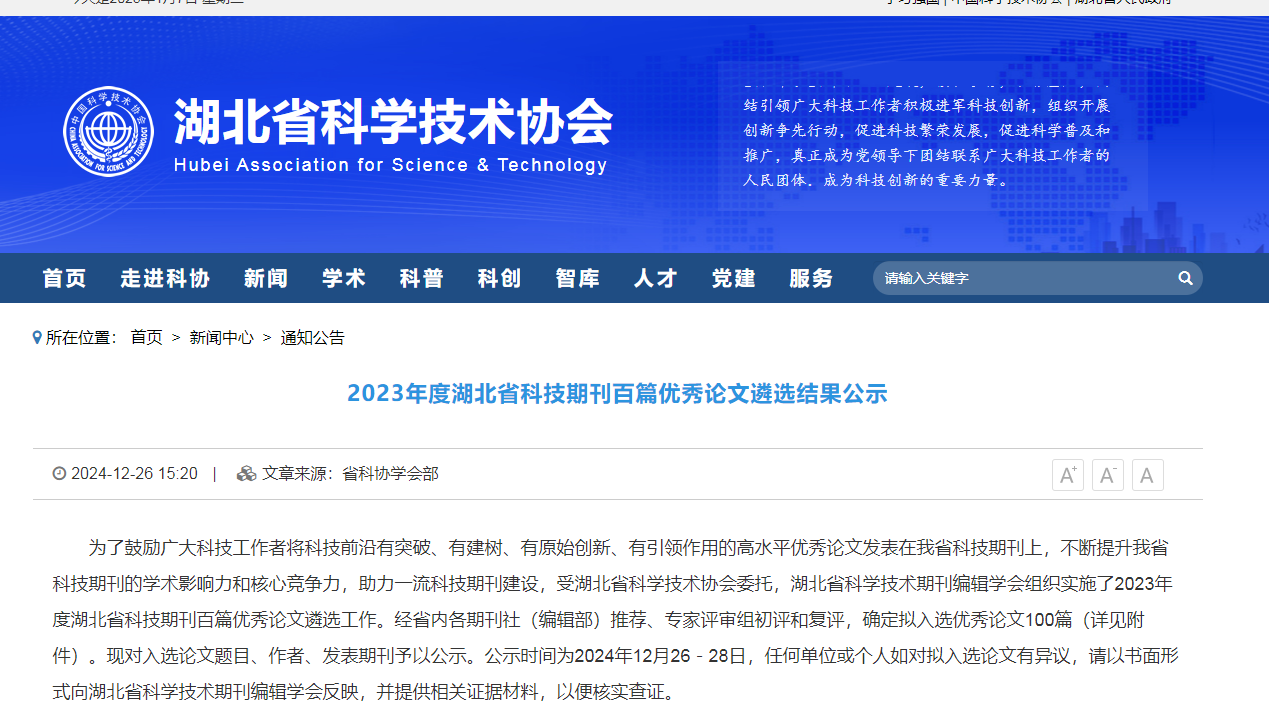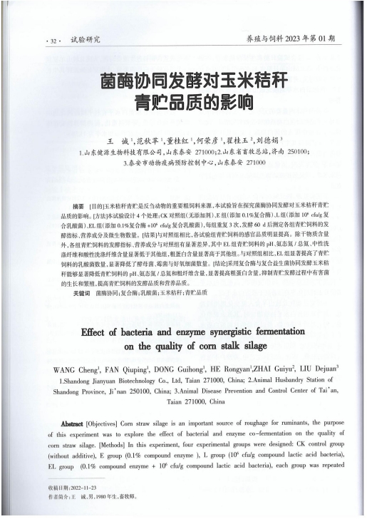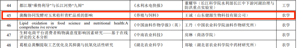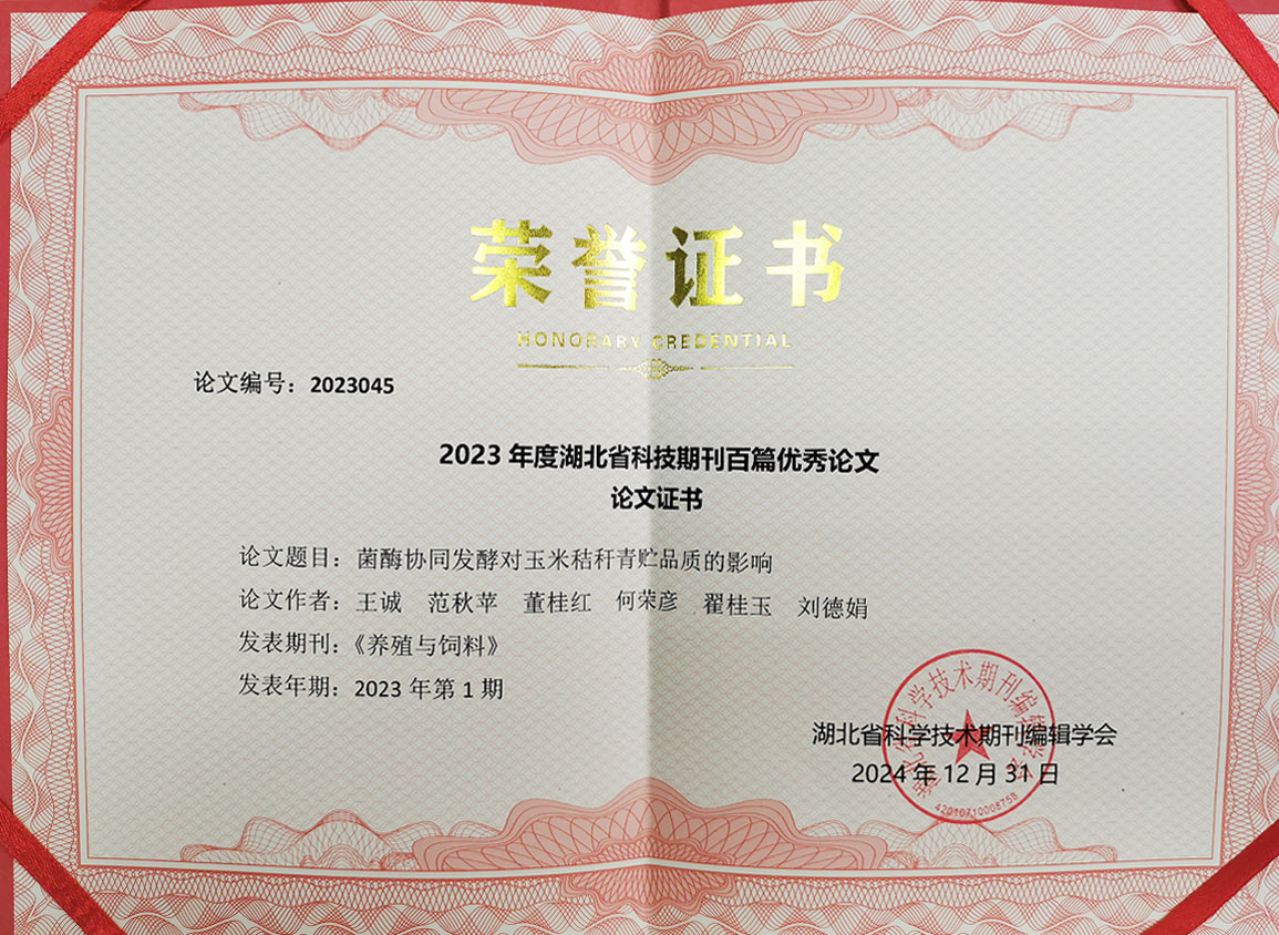 發布時間:[2025-1-15 17:6:25] 瀏覽量:3496次2024年12月31日,由湖北省科學技術協會指導,湖北省科學技術期刊編輯學會組織實施的2023年度湖北省科技期刊百篇優秀論文遴選結果公布,經過評選,山東健源生物科技有限公司董事長王誠帶領研發團隊撰寫的《菌酶協同發酵對玉米秸稈青貯品質的影響》論文入選2023年度湖北省科技期刊百篇優秀論文。