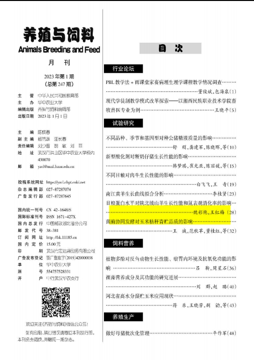 論文發表在《養殖與飼料》2023年第1期