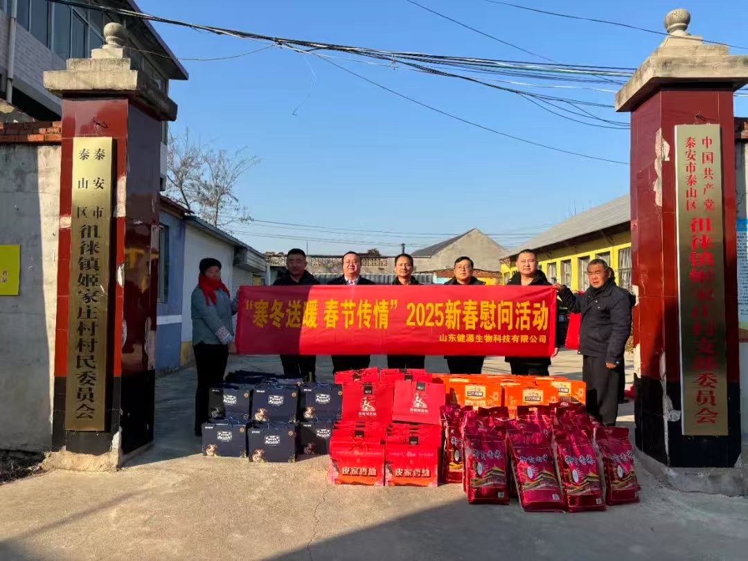 發布時間:[2025-1-20 17:16:13] 瀏覽量:3617次1月20日,山東健源生物科技有限公司前往泰山區徂徠鎮姬家莊村,組織開展“寒冬送暖 春節傳情”2025新春慰問活動。董事長王誠與慰問隊伍一起,看望了當地的困難家庭,并為他們帶去了暖心的節日慰問品。