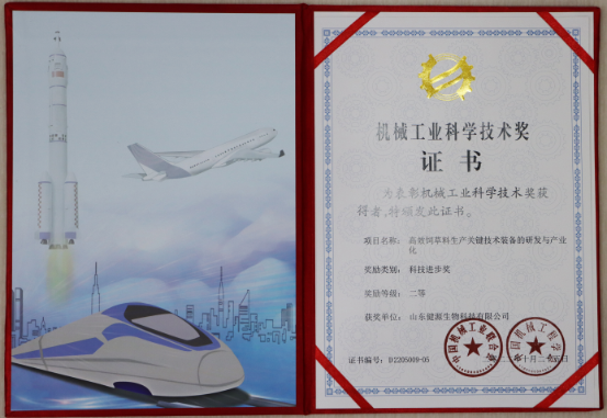 祝賀山東健源生物參與完成的《高效飼草料生產(chǎn)關(guān)鍵技術(shù)裝備的研發(fā)與產(chǎn)業(yè)化》項(xiàng)目榮獲2022年度機(jī)械工業(yè)科學(xué)技術(shù)獎(jiǎng)科技進(jìn)步獎(jiǎng)二等獎(jiǎng)